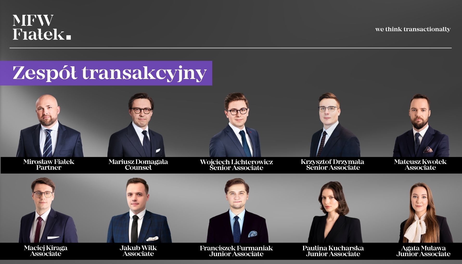 Pracami zespołu transakcyjnego kierował Mirosław Fiałek – Partner, przy kluczowym udziale Mariusza Domagały – Counsel oraz Wojciecha Lichterowicza – Senior Associate. Za przeprowadzenie badania due diligence odpowiadali: Krzysztof Drzymała – Senior Associate, Mateusz Kwolek – Associate, Maciej Kiraga – Associate, Jakub Wilk – Associate, Franciszek Furmaniak – Junior Associate, Paulina Kucharska – Junior Associate i Agata Mulawa – Junior Associate.