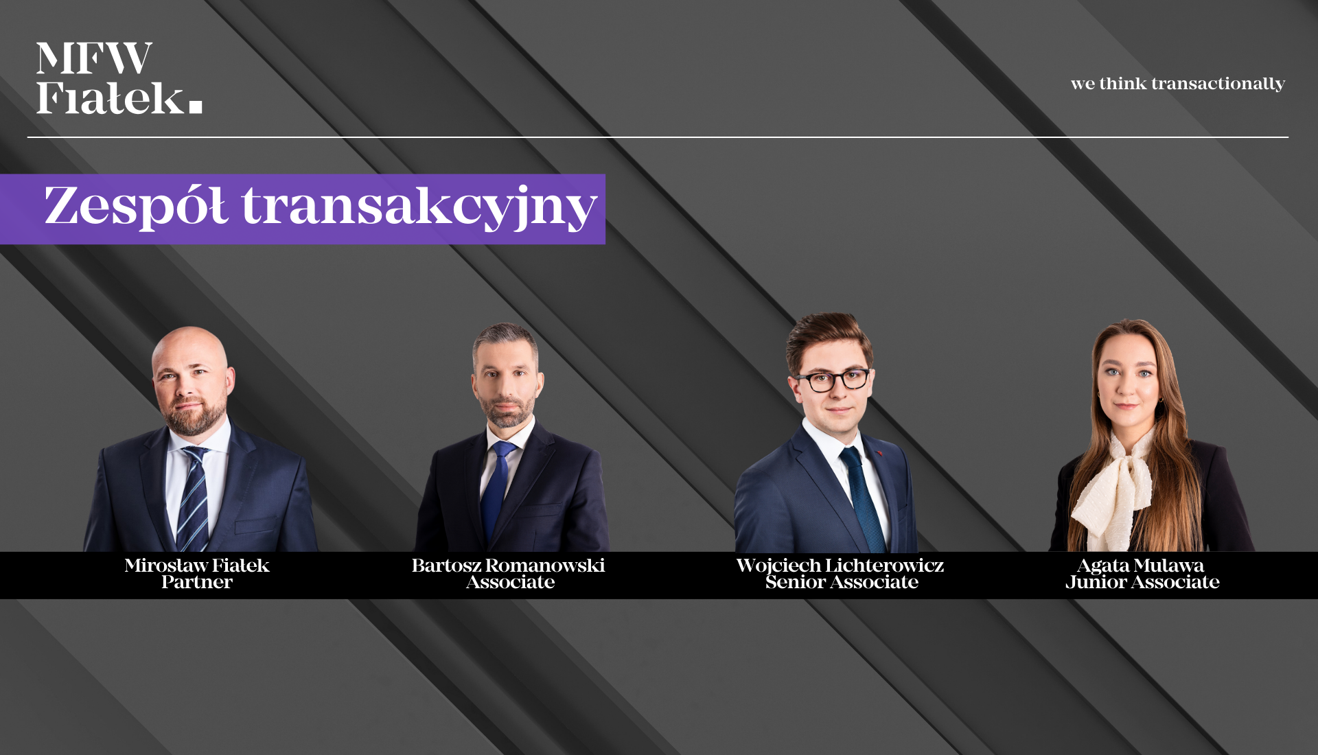 Pracami zespołu kierował Mirosław Fiałek – Partner. W skład zespołu wchodzili również Bartosz Romanowski – Associate, Wojciech Lichterowicz – Senior Associate, Agata Mulawa – Junior Associate.